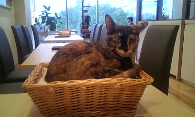 さらに違う点は、テーブルに置かれた籠に猫が普通に納まっている事ですw